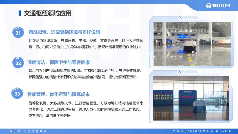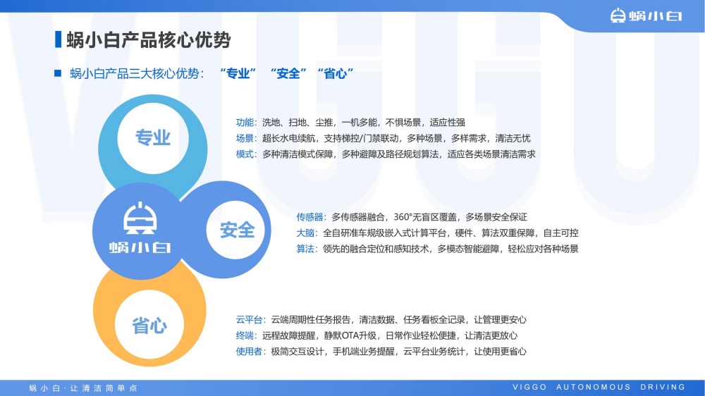 蜗小白SC50无人驾驶洗地机是智行者科技推出的一台洗扫推一体,一机多用的通用型智能清洁洗地车,具备精准环境感知、自动路径规划、自主避障、自动充电、自动加/排水、污水自动过滤等功能,可轻松应对水泥、大理石、PVC等各种室内中小型场景硬地面。