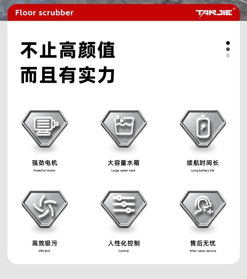 1、电机:进口一线品牌刷盘电机、吸水电机,有效保障产品的稳定性;