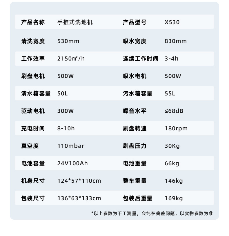 手推式洗地机X530产品参数